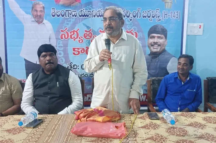 కుమ్రంభీం ఆసిఫాబాద్ (విజయక్రాంతి): జర్నలిస్టుల హక్కుల సాధనకు ఐక్యంగా ముందుకు సాగుదామని టీయుడబ్ల్యుజే రాష్ట్ర అధ్యక్షుడు అల్లం నారాయణ అన్నారు. ఆదివారం జిల్లా కేంద్రంలోని ఆదివాసి భవన్లో ఏర్పాటు చేసిన సమావేశానికి రాష్ట్ర కార్యదర్శి మారుతి సాగర్, ఎలక్ట్రానిక్ మీడియా రాష్ట్ర అధ్యక్షుడు విష్ణువర్థన్ రెడ్డితో కలిసి హాజరయ్యారు. ఈ సందర్భంగా ఆయన మాట్లాడుతూ.. సంఘం బలోపేతం కోసం మండల, జిల్లా స్థాయి కార్యవర్గాలను ఏర్పాటు చేయడం జరుగుతుందన్నారు. జర్నలిస్టు సంక్షేమానికి మీడియా ఆకాడమీ చైర్మన్గా ఉన్న సమయంలో ప్రభుత్వాన్ని ఒప్పించి ఎన్నో కార్యక్రమలను ముందుకు తీసుకువేళ్లడం జరిగిందన్నారు.