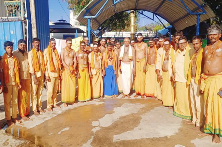 తుంగతుర్తి,(విజయక్రాంతి): సూర్యాపేట జిల్లా తుంగతుర్తి మండల కేంద్రంలోని తూర్పుబజార్ గల స్వయంభూ మహాదేవ రామలింగేశ్వర స్వామి దేవాలయంలో కార్తీకమాసం పురస్కరించుకొని బుధవారం శివ స్వాములు మాలధారణ ధరించారు. తెల్లవారుజాము నుంచే భక్తులు స్వామివారిని దర్శించుకుని, భక్తిశ్రద్ధలతో అభిషేకాలు, రుద్రాభిషేకం, శివుని పాటలు స్మరిస్తూ, భక్తిశ్రద్ధలతో నిర్వహించారు. అనంతరం గురుస్వామి ఎర్ర హరికిషన్ కర్ధమ స్వాములకు మాల ధారణ చేశారు. దీంతో శివాలయం భక్తులతో కిటకిటలాడింది.