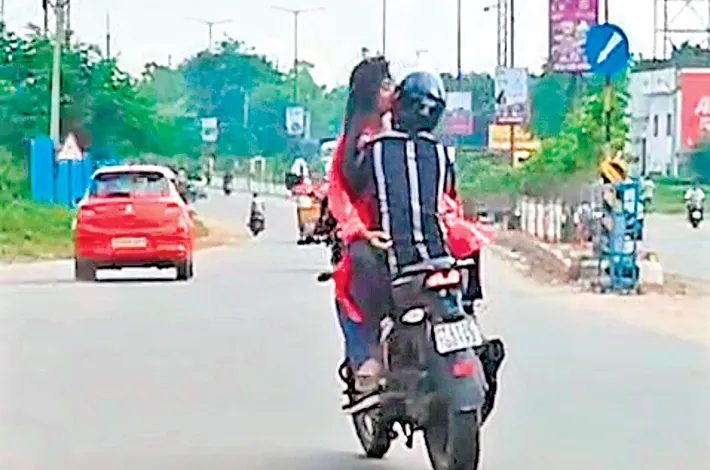 మహేశ్వరం, సెప్టెంబర్ 25 (విజయక్రాంతి): ఆ వీధుల్లోకి రయ్..మంటూ ఓ బైక్ దూసుకొచ్చింది. ప్రియుడు బైక్ నడుపుతుండగా.. ప్రియురాలు పెట్రోల్ ట్యాంక్పై కూర్చొని ప్రియుడిని కౌగిలించుకున్నది. ఆమె అంతటితో ఆగలేదు.. బైక్ వేగంగా వెళ్తుండగానే ప్రియుడికి ఘటైన ముద్దులు ఇచ్చింది. నిస్సిగ్గుగా ఆరుబయట ముద్దులు పెట్టుకోవడాన్ని చూసిన స్థానికులు ముక్కున వేలేసుకున్నారు.