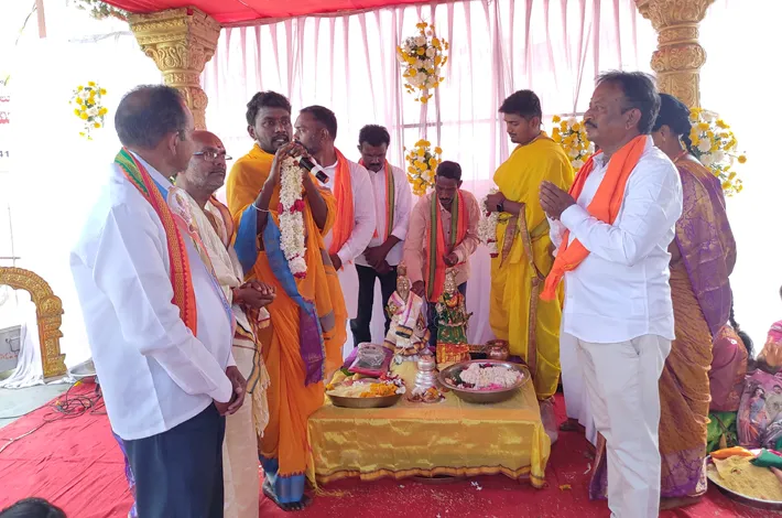 నిర్మల్ (విజయక్రాంతి): నిర్మల్ జిల్లా కేంద్రంలోని పోతులూరి వీరబ్రహ్మేంద్రస్వామి 35వ వార్షికోత్సవాన్ని పురస్కరుచుకుని బుధవారం కల్యాణోత్సవ కార్యక్రమాన్ని వైభవంగా నిర్వహించారు. మూడు రోజుల ఉత్సవాలు భంగ నిర్వహించిన కళ్యాణోత్సవానికి పట్టణం నుండి కాకుండా చుట్టుపక్కల గ్రామాల నుండి పెద్ద సంఖ్యలో భక్తులు తరలివచ్చారు. స్వామివార్లకు డిసిసి అధ్యక్షులు శ్రీరరావు విశ్వబ్రాహ్మణ సంఘం నాయకులు మున్సిపల్ చైర్మన్ గంట ఈశ్వర్ తదితరులు తరలివచ్చి ప్రత్యేక పూజలు నిర్వహించారు, మొక్కులు చెల్లించుకున్నారు. భక్తులకు అన్నదాన కార్యక్రమం ఏర్పాటు చేశారు.