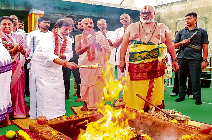 సంగారెడ్డి, విజయక్రాంతి: జిల్లా కేంద్రమైన సంగారెడ్డికి సమీపంలో కందిలో శనివారం హరే కృష్ణ మూమెంట్ ఇండియా ప్రతిష్ఠాత్మక ప్రాజెక్ట్గా రూపుదిద్దుకుంటున్న హరే కృష్ణ కల్చరల్ సెంటర్లో మహానరసింహ హో మం, గర్భాలయ యంత్ర స్థాపన పూజ వైభవంగా నిర్వహించారు.