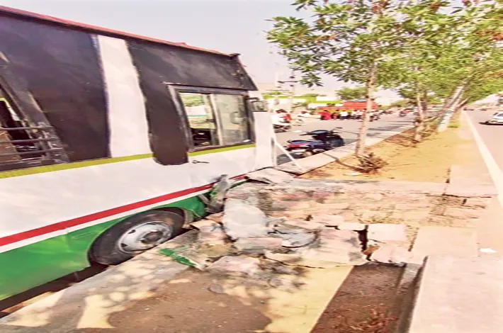 ఆర్టీసీ మినీ బస్సు టీఎస్ 23 0002 నంబరు గల బస్సు రోడ్డు మధ్యలో ఉన్న డివైడర్ను ఢీ కొట్టి ఆగింది. ఆ సమయంలో బస్సులో 40 మంది ప్రయాణికులు ఉండగా వారు ఎ లాంటి గాయాలు కాకపోవడంతో అందరూ ఊపిరి పీల్చుకున్నారు. మినీ బస్సు మాత్రం ముందు భాగం నుజు నుజ్జు కావడంతో డ్రైవర్ రవీందర్ పోలీసులను ఆశ్రయిం చారు.