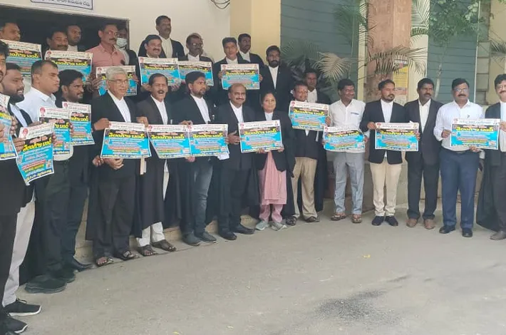 నల్గొండ టౌన్: బీసీలకు 42 శాతం రిజర్వేషన్ల పెంపును అడ్డుకుంటున్న ఆధిపత్య శక్తులకు వ్యతిరేకంగా అక్టోబర్ 18 తెలంగాణ బంద్ ను విజయవంతం చేయాలని బీసీ న్యాయవాదుల జేఏసీ కన్వీనర్ లు జెనిగల రాములు, గిరి లింగయ్య గౌడ్, విజ్ఞప్తి చేశారు. గురువారం జిల్లా కోర్టులో బంద్ పోస్టర్ ను బి.సి అడ్వకేట్ జేఏసీ అధ్వర్యంలో కోర్టు ఆవరణంలో ఆవిష్కరించారు. ఈ సందర్భంగా వారు మాట్లాడుతూ భారతదేశం అంటేనే కుల పునాదుల మీద నిర్మితమైన వ్యవస్థ అన్నారు. జనాభా దామాషా ప్రాతిపదికన రిజర్వేషన్లు కల్పించాలని తెలంగాణలో ఉద్యమం కొనసాగుతుందన్నారు. జనాభా నిష్పత్తి ప్రాతిపదికన రిజర్వేషన్లు కల్పించడం ఒక ప్రజాస్వామిక బద్ధమైన సూత్రమని, రిజర్వేషన్ల లక్ష్యం సామాజిక వర్గాల మధ్య సమానత్వం సాధించడమే తప్ప సామాజిక వర్గాల లోపల అసమానత్వం సాధించడం కాదన్నారు.