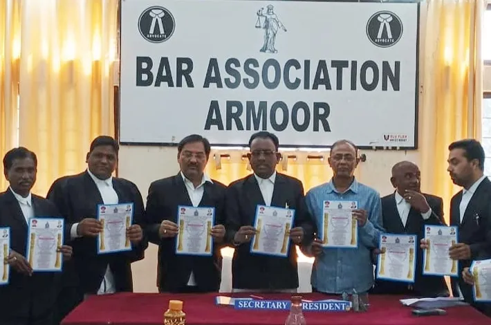 అర్మూర్ (విజయక్రాంతి): ఇండియన్ లీగల్ ప్రొఫెషనల్స్ అసోసియేషన్ ఆధ్వర్యంలో ఈ నెల 20న కొత్తగూడెంలో నిర్వహించే 5వ తెలంగాణ రాష్ట్ర కన్వెన్షన్ సమావేశాన్ని విజయవంతం చేయాలని అర్మూర్ బార్ అసోసియేషన్ అధ్యక్షుడు జక్కుల శ్రీధర్, ప్రధాన కార్యదర్శి జెస్సు అనిల్ కుమార్ లు కోరారు. మంగళవారం బార్ అసోసియేషన్ హాలులో న్యాయవాదులతో కలిసి కర పత్రాలను విడుదల చేశారు. ఈ కార్యక్రమానికి ముఖ్యఅతిథిగా ఆంధ్రప్రదేశ్ మాజీ హైకోర్టు న్యాయమూర్తి వి.ఈశ్వరయ్య, అతిథులుగా కొత్తగూడెం జిల్లా న్యాయమూర్తి పాటిల్ విశ్వనాథ్, ఫస్ట్ అడిషనల్ డిస్టిక్ కోర్టు న్యాయమూర్తి సరితలు పాల్గొంటారని పేర్కొన్నారు.