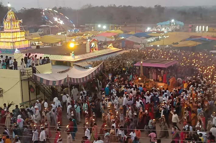 నిర్మల్ (విజయక్రాంతి): నిర్మల్ జిల్లా రూరల్ మండలంలోని ముజ్గీ గ్రామంలో నిర్వహిస్తున్న మల్లన్న జాతరలో భాగంగా రెండవ రోజు సల్లనంబళ్ళు (సల్లకుండలు) భోనాలు బుధవారం సాయంత్రం ఘనంగా జరిగాయి. ప్రతి సంవత్సరం మాఘమాసం పౌర్ణిమను పురష్కరించుకొని మల్లన్న స్వామీకి పెద్ద ఎత్తున భోనాలు సమర్పించారు. నిర్మల్ జిల్లాలో పాటు నిజమాబాద్, జగిత్యాల ఆదిలాబాదు మంచిర్యాల జిల్లాల నుండి భక్తులు పెద్ద సంఖ్యలో తరలిరావడంతో మల్లన్న ఆలయం భక్తులతో కిటకిటలాడింది. సల్ల నంబళ్ళతో భోనాలు సమర్పిస్తే ఏడాది కాలం ప్రజలు సుఖ సంతోషాలతో ఉండి పాడి పంటలు సమృద్దిగా పండుతాయని పశుపోషన పెరుగుతుందని భక్తుల విశ్వాసం. యాధవులు ప్రత్యేక పూజలు ఆచారాలతో నిర్వహించారు. భోనాల జాతరను పురష్కరించుకోని పోలీస్ శాఖ బందోబస్తు ఏర్పాటు చేశారు. గురువారం రథోత్సవం నిర్వహించనున్నారు.