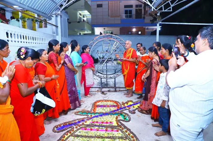 రాజన్న సిరిసిల్ల, నవంబర్ 9 (విజయ్క్రాంతి):వేములవాడ రాజరాజేశ్వర స్వామి దేవస్థానంలో కార్తీక మాసాన్ని పురస్కరించుకుని దేవాదాయ ధర్మాదాయ శాఖ ఆదేశాల మేరకు తేది: 22-10-2025 బుధవారం నుండి తేది: 20-11-2025 గురువారం వరకు సామూహిక కార్తీక దీపోత్సవం కార్యక్రమాలు ప్రారంభమయ్యాయి.ఈ సందర్భంగా ఆదివారం సాయంత్రం 19వ రోజుభీమేశ్వర స్వామి ఆలయ ప్రాంగణంలో జ్యోతి ప్రజ్వలన చేసి సాంస్కృతిక కార్యక్రమాలను ఘనంగా ప్రారంభించారు.