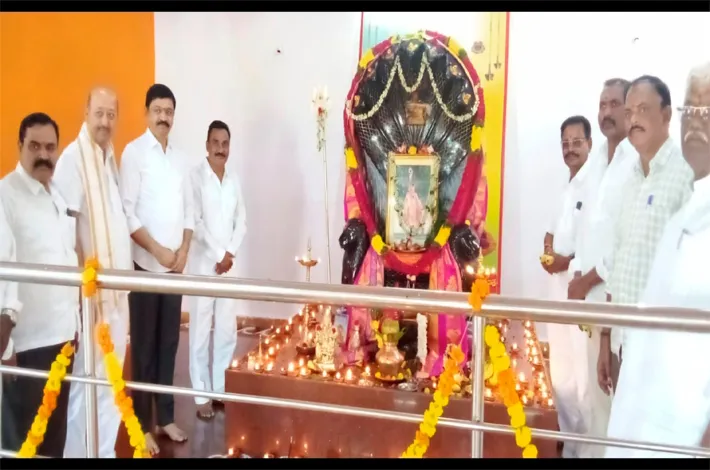 నారాయణపేట, నవంబర్ 9 (విజయక్రాంతి): నారాయణపేట జిల్లా కేంద్ర సమీపంలోని పగడి మారి రోడ్డు లో గల శ్రీ శ్రీ శ్రీ సద్గురు రూపరహిత అహింసా యోగేశ్వరి వీరధర్మజ మాతా మాణికేశ్వరి ఏడవ వార్షికోత్సవ వేడుకలు ఆదివారం ఘనంగా నిర్వహించారు. ఈ సందర్భంగా ఉదయం 6 గంటలకు ధ్వజారోహణము, 7 గంటలకు గోమాత పూజ, 8 గంటలకు నాగ సింహా సన అభిషేకము, 9 గంటలకు అమ్మవారి పాదుకల అభిషేక పూజలు, మహా గాయత్రి యజ్ఞము, 12 గంటలకు మంగళహారతి, మహిళలచే ఓంకారం త్రిశూలాకార కార్తీక దీపాలంకరణోత్సవము, ఒంటిగంటకు తీర్థ ప్రసాద అన్న దాన కార్యక్రమాలను నిర్వహించారు.