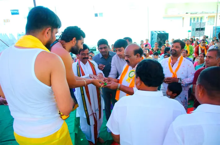 హనుమకొండ టౌన్, మార్చి 27 (విజయక్రాంతి): హనుమకొండ శ్రీనగర్ కాలనీ కేయూ ఎంప్లాయిస్ కాలనీలో శ్రీరామనవమి పర్వదినాన్ని పురస్కరించుకొని, ధర్మసేతు గ్లోబల్ వెల్ఫేర్ సొసైటీ వ్యవస్థాపక అధ్యక్షులు శ్రీకాంత్ అనగంటి ఆధ్వర్యంలో శ్రీ సీతారాముల దివ్య కళ్యాణ మహోత్సవం వేడుకలు ఘనంగా నిర్వహించారు. ఈ వేడుకలకు ముఖ్యఅతిథిగా శాసనమండలి ప్రతిపక్ష నేత సిరికొండ మధుసూదనాచారి పాల్గొని, శ్రీ సీతారాముల వారి కళ్యాణ మహోత్సవం ఆశీర్వాదాలు పొందినారు. అనంతరం వారు మాట్లాడుతూ శ్రీ సీతారామచంద్ర స్వామి వారి ఆశీస్సులతో రాష్ట్ర ప్రజలందరూ సుఖ సంతోషాలతో, ఆయురారోగ్యాలతో ఉండాలని ఆకాంక్షిస్తూ అందరికీ శ్రీరామనవ శుభాకాంక్షలు తెలిపారు.