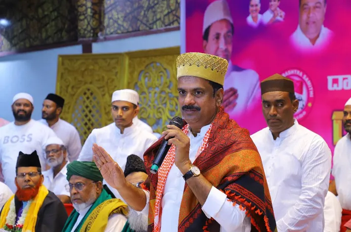 నాగర్ కర్నూల్ (విజయక్రాంతి): దేవుడి ఆశీస్సులు ప్రతి ఒక్కరిపై ఉండాలని పవిత్ర రంజాన్ మాసంలో ముస్లింలు చేసే ఉపవాస దీక్షలు ఫలించాలని స్థానిక మాజీ ఎమ్మెల్యే మర్రి జనార్దన్ రెడ్డి అన్నారు. శనివారం జిల్లా కేంద్రంలోని ఓ ప్రైవేటు ఫంకషన్ హాల్ లో ముస్లింలకు ఇఫ్తార్ విందు ఏర్పాటు చేశారు. అల్లా బోధనలను ప్రతి ఒక్కరూ పాటించాలని ఇఫ్తార్ విందులు మతసామరస్యానికి ప్రతీకలన్నారు. సర్వమతాలను సమానంగా చూసేదే బీఆర్ఎస్ పార్టీ అన్నారు. గత ప్రభుత్వంలో కేసీఆర్ నిరుపేద ముస్లిం కుటుంబాలకు రంజాన్ తోఫా, మజీద్ ఇమామ్, మోజాన్ లకు పారితోషకం అందించారని గుర్తు చేశారు. ఈ కార్యక్రమంలో పలువురు పార్టీ నాయకులు కార్యకర్తలు పాల్గొన్నారు.