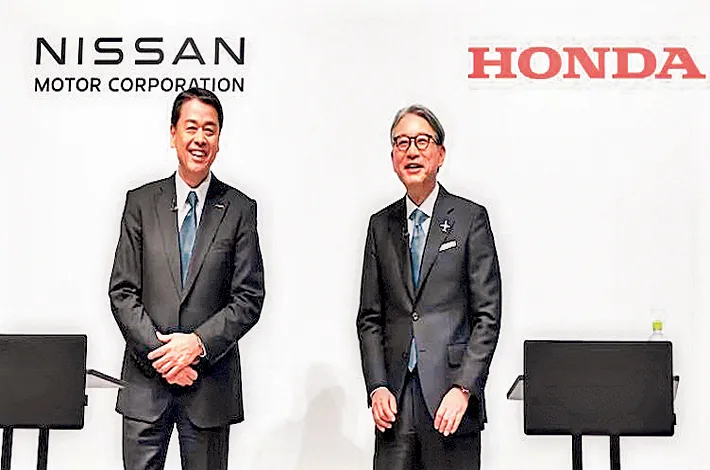 టోక్యో: జపాన్ కార్ల తయారీ సంస్థలైన హోండా, నిస్సాన్ కంపెనీలు పరస్పరం విలీ నం కాబోతున్నాయి. ఈమేరకు విలీన ప్రణాళికలను ప్రకటించాయి. దీంతో రెండు సంస్థ లు అమ్మకాల పరంగా ప్రపంచంలో మూ డో అతిపెద్ద వాహన తయారీదారుగా అవతరించినట్లవుతుంది. ఎలక్ట్రిక్ వాహనాల (ఈవీ) మార్కెట్లో పోటీతత్వాన్ని పెంచడం, టెస్లా, చైనా వాహన తయారీదారు బీవైడీ వంటి ప్రత్యర్థులను ఎదుర్కోవడానికి ఈ విలీనం ఎంతో ఉపయోగపడుతుందని ఇరు కంపెనీ ల అధికారులు తెలిపారు. మిత్సుబిషి మోటా ర్స్ కూడా ఈ విలీనంలో చేరబోతున్నట్లు ప్రకటించారు. ఈ సందర్భంగా హోండా ప్రెసిడెం ట్ తోషిహిరో మిబే మాట్లాడుతూ హోండా, నిస్సాన్ జాయింట్ హోల్డింగ్ కంపెనీకి హోం డా నాయకత్వం వహిస్తుందన్నారు.