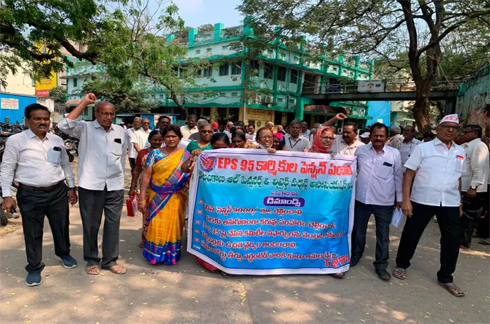 ఖమ్మం టౌన్, ఫిబ్రవరి 11 (విజయ క్రాంతి): ఈపిఎస్ 95 పెన్షనర్లకు కనీస పెన్షన్ 9000 అమలు చేయాలని తెలంగాణ ఆల్ పెన్షనర్స్ అసోసియేషన్ ఖమ్మం జిల్లా శాఖ డిమాండ్ చేసింది. ఆల్ ఇండియా యునైటెడ్ యాక్షన్ కమిటీ ఆఫ్ ఈ పి ఎస్ పెన్షనర్స్ అసోసియేషన్స్ పిలుపుమేరకు బుధవారం జిల్లా అధ్యక్షులు ఎల్ గోపిచంద్ అధ్యక్షతన ఈ పి ఎఫ్ కార్యాలయం ముందు ధర్నా నిర్వహించారు.