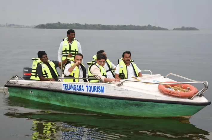 కామారెడ్డి (విజయక్రాంతి): కామారెడ్డి జిల్లాలో రాష్ట్ర టూరిజం సాంస్కృతిక శాఖ ఎక్సైజ్ శాఖామాత్యులు జూపల్లి కృష్ణారావు శనివారం ఉదయం నుంచి సాయంత్రం వరకు పలు కార్యక్రమాల్లో పాల్గొన్నారు. సాయంత్రం కామారెడ్డి జిల్లా నాగిరెడ్డిపేట పోచారం ప్రాజెక్టును సందర్శించారు. జహీరాబాద్ పార్లమెంటు సభ్యుడు సురేష్ షెట్కర్, ఎల్లారెడ్డి ఎమ్మెల్యే మదన్ మోహన్ రావు, జిల్లా కలెక్టర్ ఆశిష్ సంగువన్ లతో కలిసి పోచారం జలాశయంలో బోటింగ్ చేశారు. హైలాండ్ వరకు బోటులో ప్రయాణించి షికారు చేశారు. సాయంత్రం వేళ కావడంతో ఆహ్లాదకర వాతావరణంలో హుషారుగా షికారుగా బోటింగ్ లో ప్రయాణించారు.