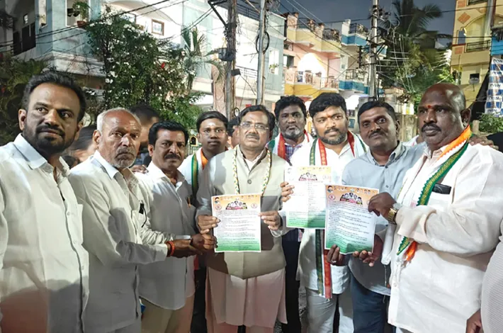 సిద్దిపేట రూరల్: బీఆర్ఎస్ మోసాలను ప్రజల్లోకి తీసుకెళ్లాలని, తెలంగాణ అభివృద్ధి కాంగ్రెస్ తోనే సాధ్యమని రాష్ట్ర కార్మిక, మైనింగ్ శాఖమంత్రి గడ్డం వివేక్ వెంకట స్వామి అన్నారు. ఆదివారం కాంగ్రెస్ పార్టీ సీనియర్ నాయకుడు, బుస్సాపూర్ మాజీ సర్పంచ్ కేదారి సదాశివ రెడ్డి రూపొందించిన బీఆర్ఎస్ డోకా కార్డును హైదరాబాద్ లో మంత్రి వివేక్ ఆవిష్కరించారు. ఉద్యమ సమయంలో బీఆర్ఎస్ ఇచ్చిన హామీలు, తెలంగాణ ఏర్పడిన తర్వాత కేసీఆర్ సీఎం హోదాలో ఇచ్చిన హామీలు ఏ రకంగా తుంగలోతొక్కి ప్రజలను మోసం చేసి డోకా ఇచ్చారో వివరిస్తూ డోకా కార్డును రూపొందించిన ట్లు సదాశివరెడ్డి తెలిపారు. వారు ఇచ్చిన హామీలు నెరవేర్చకుండా రాష్ట్రన్ని అప్పులకుప్పగా మార్చి, వారు మాత్రం ఆస్తులు పెంచుకున్నారని ఆరోపించారు.