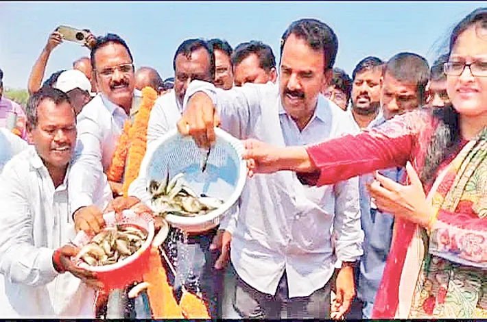 వంద శాతం సబ్సిడీతో మత్స్యకారులకు చేప పిల్లలను పంపిణీ చేస్తున్నామని చెప్పారు. జిల్లాలో 2.50 కోట్ల చేప పిల్లల పంపిణీకి ఏర్పాట్లు చేశామని అన్నారు. అనంతరం జిల్లా కలెక్టర్ బాదావత్ సంతోష్ చేప పిల్లలను పంపిణీ చేశారు. వారితోపాటు సెంట్రల్ జైంట్ సెక్రెటరీ నీతు ప్రసాద్ , మత్స్య శాఖ కమిషనర్ నిఖిల రెడ్డి,జిల్లా మత్స్యశాఖ అధికారిని రజిని ఉన్నారు.