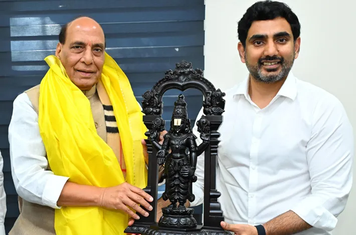 అమరావతి: న్యూఢిల్లీలోని కేంద్ర రక్షణ మంత్రి రాజ్నాథ్సింగ్(కేంద్ర రక్షణ మంత్రి రాజ్నాథ్సింగ్) నివాసంలో ఆంధ్రప్రదేశ్ విద్య, ఐటీ, ఎలక్ట్రానిక్స్ శాఖల మంత్రి నారా లోకేష్(Minister Nara Lokesh) ఆయనతో సమావేశమయ్యారు. ఈ సమావేశంలో సంకీర్ణ ప్రభుత్వం ఏర్పడిన తర్వాత ఆంధ్రప్రదేశ్లో చేపట్టిన అభివృద్ధి కార్యక్రమాలను లోకేష్ రాజ్నాథ్ సింగ్కు వివరించారు. రాష్ట్రంలో డిఫెన్స్ క్లస్టర్ ఏర్పాటు చేయాలని కోరారు.