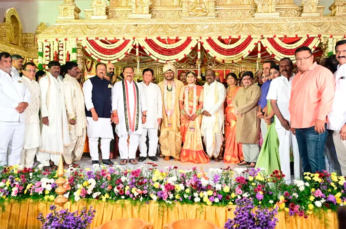 కామారెడ్డి, నవంబర్ 13 (విజయక్రాంతి): కామారెడ్డి వెలమ ఫంక్షన్ హాల్లో గురువారం ప్రముఖ న్యాయవాది, పబ్లిక్ ప్రాసిక్యూటర్ తాటిపాముల రాజగోపాల్ గౌడ్ కుమార్తెను రాష్ట్ర రోడ్డు రవాణా శాఖ మంత్రి పొన్నం ప్రభాకర్ గౌడ్ మేనల్లుడి కి వివాహము జరిపించారు. ఈ వివాహానికి మంత్రి పొన్నం ప్రభాకర్ గౌడ్, పిసిసి అధ్యక్షుడు మహేష్ కుమార్ గౌడ్ పాల్గొని నూతన వధూవరులను ఆశీర్వదించారు.