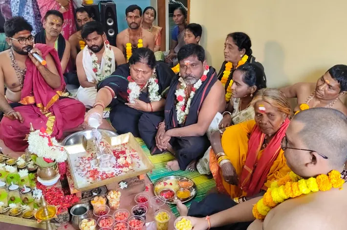 కుమ్రం భీం ఆసిఫాబాద్ (విజయక్రాంతి): ఆసిఫాబాద్ పట్టణానికి చెందిన దూడల అశోక్ నివాసంలో అత్యంత భక్తి శ్రద్ధలతో అయ్యప్ప పడి పూజా మహోత్సవంలో ఆసిఫాబాద్ ఎమ్మెల్యే కోవ లక్ష్మి పాల్గొని అయ్యప్ప స్వామికి ప్రత్యేక పూజ చేశారు. ఈ సందర్భంగా ఎమ్మెల్యేకు దూడల అశోక్ స్వామివారి ప్రసాదాన్ని అందజేసి, ఆశీస్సులు తీసుకున్నారు. ఈ కార్యక్రమానికి నాయకులు, అయ్యప్ప స్వాములు, భక్తులు పాల్గొన్నారు.
