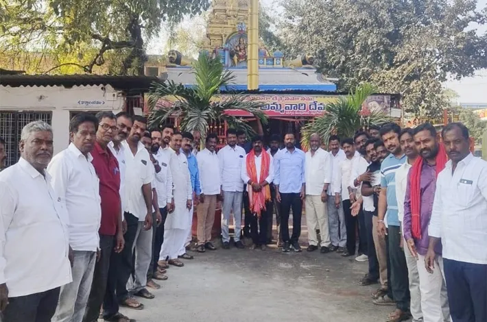 స్వాగతం పలికిన గుడి చైర్మన్, పార్టీ నాయకులు