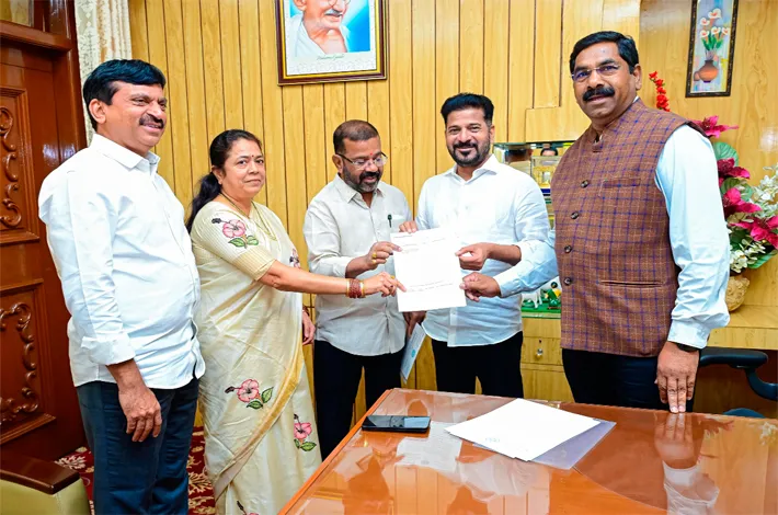 హనుమకొండ టౌన్, జనవరి 2 (విజయక్రాంతి): హైదరాబాద్ సేక్రటేరియట్ లో రాష్ట్ర ముఖ్యమంత్రి రేవంత్ రెడ్డిని శుక్రవారం జిల్లా ఇన్చార్జి మంత్రి పొంగులేటి శ్రీనివాస్ రెడ్డి తో కలిసి వరంగల్ పశ్చిమ ఎమ్మెల్యే నాయిని రాజేందర్ రెడ్డి, వర్ధన్నపేట ఎమ్మెల్యే కే.ఆర్ నాగరాజు, వరంగల్ నగర మేయరు గుండు సుధారాణి లు మర్యాదపూర్వకంగా కలిశారు. ఈ సందర్భంగా వరంగల్ నగర అభివృద్ధికి సంబంధించిన పలు కీలక అంశాలపై ముఖ్యమంత్రితో విస్తృతంగా చర్చించి వినతిపత్రం అందజేశారు.