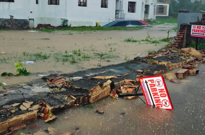 మొంథా ఎఫెక్ట్: కేయూ న్యాయ కళాశాల ప్రహరీ గోడ నేలమట్టం