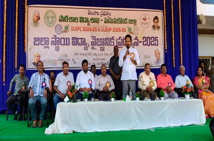 హనుమకొండ,డిసెంబర్ 19 (విజయ క్రాంతి): శాస్త్ర, సాంకేతిక రంగాలలో మరింత అభివృద్ధి చెందాలని,అప్పుడే విశ్వ గురువు గా భారత్ కీర్తించబడుతుందని ఎమ్మెల్సీ పింగిలి శ్రీపాల్ రెడ్డి అన్నారు. హనుమకొం డ లోని సెయింట్ పీటర్స్ ఎడ్యు స్కూల్ ఆవరణలో ఏర్పాటు చేసిన జిల్లా స్థాయి విద్యా వైజ్ఞానిక ప్రదర్శనను ఆయన దీప ప్రజ్వలన చేసి ప్రారంభించారు. అనంతరం జిల్లా వి ద్యాశాఖ అధికారి ఎల్. వి. గిరిరాజ్ గౌడ్ అ ధ్యక్షతన ఏర్పాటు చేసిన సమావేశంలో ఎమ్మెల్సీ పింగిలి శ్రీపాల్ రెడ్డి మాట్లాడుతూ ప్రపంచ దేశాలతో, అభివృద్ధి చెందిన దేశాలతో పోటీ పడాలంటే శాస్త్ర, సాంకేతిక రం గాలలో మరింత పురోభివృద్ధి అవసరమన్నారు.