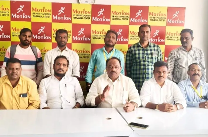 అలాగే మోషన్ ఐఐటీ, నీట్ వరంగల్ సెంటర్ నుండి కూడా మోషన్ టాలెంట్ టెస్ట్ లో మొదటి 10 ర్యాంకులు సాధించిన విద్యార్థులకు ఉచిత విద్యతో పాటు మొదటి ర్యాంక్ విద్యార్ధికి ల్యాబ్ టాప్ రెండవ ర్యాంక్ సాధియించిన విద్యార్ధికి టాబ్ ఇవ్వనున్నట్లు తెలియజేశారు. కావున ఈ మంచి అవకాశాన్ని ఈ సంవత్సరము 10వ తరగతి చదువుతున్న స్టేట్, సిబిఎస్ విద్యార్థులు సద్వినియోగం చేసుకోవాలని అన్నారు. టాలెంట్ టెస్ట్ రిజిస్ట్రేషన్ కోసం 9703000850/851/852 సెల్ నెంబర్లకు గాను మోషన్ ఐఐటీ, నీట్ ఇన్స్టిట్యూట్ నయీమ్ నగర్, హన్మకొండ నందు సంప్రదించగలరని వడ్లకొండ వేణుగోపాల్ గౌడ్ కోరారు. ఈ కార్యక్రమంలో మోషన్ కాలేజీ డైరెక్టర్ పెరుమాండ్ల అనిల్ గౌడ్, బ్రాంచ్ హెడ్ ముత్యాల సురేష్, ఏజీఎం శనిగరపు సుమన్, ఏవో తాళ్లపెల్లి రమేష్, పాక నాగరాజు, రచ్చ కుమార్, మార్కెటింగ్ ఎగ్జిక్యూటివ్ సభ్యులు సురేందర్, తాళ్లపెల్లి వెంకట్, రావుల రవీందర్, ఒంటెరు మనోహర్, బోడ సంతోష్, జి. అనిల్, రంజిత్, కాలేజీ సిబ్బంది లక్ష్మణ్, మౌనిక, ఉమ తదితరులు పాల్గొన్నారు.
