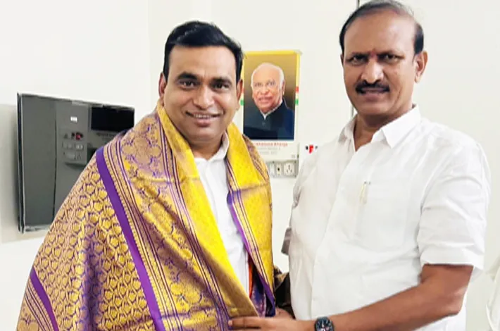 కరీంనగర్,(విజయక్రాంతి): భువనగిరి ఎంపీ చామల కిరణ్ కుమార్ రెడ్డిని సుడా చైర్మన్ కోమటిరెడ్డి నరేందర్ రెడ్డి ఘనంగా సన్మానించారు. కరీంనగర్ డిసిసి అభిప్రాయసేకరణ కోఆర్డినేటర్ భువనగిరి ఎంపి చామల కిరణ్ కుమార్ రెడ్డి డిసిసి కార్యాలయం కు వచ్చిన సందర్భంగాసుడా చైర్మన్,నగర కాంగ్రెస్ అధ్యక్షుడు కోమటిరెడ్డి నరేందర్ రెడ్డి శాలువా కప్పి సన్మానించారు.