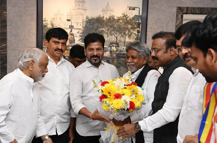 హైదరాబాద్: మాదిగ రిజర్వేషన్ పోరాట సమితి (Madiga Reservation Porata Samiti) అధ్యక్షుడు మంద కృష్ణ మాదిగ తెలంగాణ ముఖ్యమంత్రి రేవంత్ రెడ్డి(Chief Minister Revanth Reddy)ని కలిశారు. ఈ సమావేశంలో మంత్రి పొంగులేటి శ్రీనివాస్ రెడ్డి, ప్రభుత్వ సలహాదారు కె. కేశవ రావు, ముఖ్యమంత్రి సలహాదారు వేం నరేంద్ర రెడ్డి, మాజీ ఎమ్మెల్యే సంపత్ కుమార్, మాదిగ ఉప కులాల ప్రతినిధులు పాల్గొన్నారు.