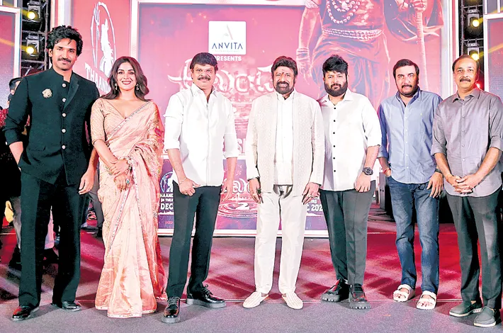 బాలకృష్ణ హీరోగా బోయపాటి శ్రీను దర్శకత్వంలో రూపొందుతున్న చిత్రం ‘అఖండ2’. 14 రీల్స్ ప్లస్ ఎంటర్టైన్మెంట్, ఐవీవై ఎంటర్టైన్మెంట్ బ్యానర్లపై రామ్ అచంట, గోపీచంద్ అచంట, ఇషాన్ సక్సెనా నిర్మిస్తున్నారు. ఈ చిత్రంలో సంయుక్త మీనన్ హీరోయిన్. ఆది పినిశెట్టి ప్రతినాయకుడి పాత్ర పోషిస్తుండగా, హర్షాలీ మల్హోత్రా కీలక పాత్రలో కనిపించనున్నారు. డిసెంబర్ 5న ఈ సినిమా రిలీజ్ కానుంది. ఈ నేపథ్యంలో మేకర్స్ శుక్రవారం ఈ మూవీ ప్రీరిలీజ్ ఈవెంట్ను నిర్వహించారు.