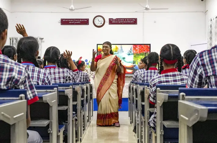 రాష్ట్రపతిగా ద్రౌపది ముర్ము రెండేళ్ల పదవీకాలాన్ని పూర్తిచేసుకున్నారు. రెండేళ్ల ప్రయాణం పూర్తిచేసుకున్న సందర్భంగా గురువారం ఆమె ఢిల్లీలోని ప్రెసిడెంట్ ఎస్టేట్లోని డాక్టర్ రాజేంద్రప్రసాద్ కేంద్రీయ విద్యాలయలోని 9వ తరగతి విద్యార్థులకు పాఠాలు బోధించారు. విద్యార్థులతో సరదాగా గడిపారు. తనకు టీచర్ జాబ్ అంటే ఎంతో ఇష్టమని అన్నారు. ఈ సందర్భంగా గ్లోబల్ వార్మింగ్, నీటి సంరక్షణ అనే అంశాలపై విద్యార్థులకు బోధించారు. పర్యావరణ పరిరక్షణ అందరి బాధ్యత అఅని అన్నారు. దేశ ప్రధాని నరేంద్ర మోడీ పిలుపునిచ్చిన మేరకు ‘ఏక్ పేడ్ మా కే నామ్’ను ప్రస్తావిస్తూ ప్రతీ విద్యార్థి తన జన్మదినం రోజున ఒక మొక్కను నాటాలని కోరారు. అలాగే నీటిని పొదుపుగా వాడుకోవాలని.. దుబారా చేయవద్దని సూచించారు. కాగా ఒడిశాకు చెందిన ద్రౌపది ముర్ము దేశ అత్యున్నత పదవిని అధిరోహించిన తొలి ఆదివాసీ వ్యక్తిగా రికార్డులకెక్కారు.