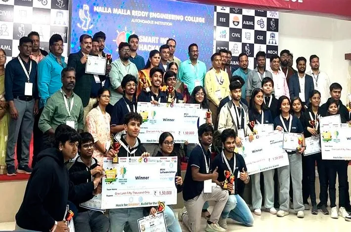 ఘట్ కేసర్, డిసెంబర్ 10 (విజయక్రాంతి) : జిహెచ్ఎంసి పోచారం సర్కిల్ దివ్య నగర్ లోని నల్ల మల్లారెడ్డి ఇంజనీరింగ్ కళాశాలలో రెండు రోజులుగా జరుగుతున్న జాతీయ స్థాయి స్మార్ట్ ఇండియా హ్యాకథాన్-2025 గ్రాండ్ ఫినాలే కార్యక్రమం బుధవారం దేశం నలుమూలల నుండి వచ్చిన విద్యార్థుల పరిశోధనలు సాంకేతిక ఆవిష్కరణలతో విజయవంతంగా ముగిసింది.