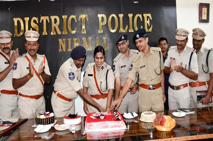 నిర్మల్, జనవరి 1 (విజయక్రాంతి): జిల్లా కేంద్రంలోని ఎస్పీ కార్యాలయంలో నూతన సంవత్సర వేడుకలను జిల్లా ఎస్పీ జానకి గురువారం ఘనంగా నిర్వహించారు. 2025 సంవత్సరాలకి వీడుకోలు పలికి 2026కు స్వాగతం పలు కుతూ కేక్ కట్ చేసి స్వీట్లు పంచి పెట్టుకున్నారు. ఈ కార్యక్రమంలో ఏఎస్పిలు ఉపేందర్ రెడ్డి రాజేష్ మీనా సాయికిరణ్ పోలీసు సిబ్బంది ఉన్నారు.