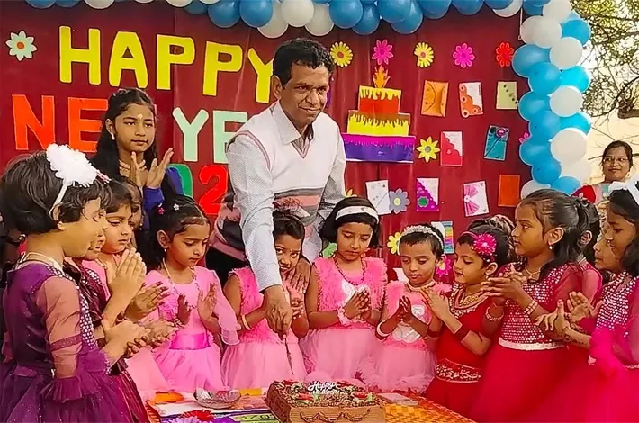ముకరంపుర, డిసెంబరు 31 (విజయ క్రాంతి): కరీంనగర్లోని వివిధ అల్ఫోర్స్ పాఠశాలల్లో బుధవారం ముందస్తు 2026 నూతన సంవత్సర వేడుకలను ఘనంగా నిర్వహించారు. అల్ఫోర్స్ విద్యాసంస్థల అధినేత డాక్టర్ వి నరేందర్ రెడ్డి హాజరై కేక్ కట్ చేసి వేడుకలను ప్రారంభించారు. ఈ సందర్భంగా ఆయన మాట్లాడుతూ నూతన సం వత్సరంలో విజయాలను నమోదు చేయాలని, సమాజ హితంగా కార్యక్రమాలను చేపట్టి ముందంజలో నిలవాలని అన్నారు. ప్రధానంగా విద్యార్థులందరూ తల్లిదండ్రుల ఆ శయాలకు అనుగుణంగా కృషిచేసి లక్ష్యాలను సాధించాలని సూచించారు. విద్యార్థు లు ప్రదర్శించిన పలు కార్యక్రమాలు అలరించాయి. ఈ కార్యక్రమంలో పాఠశాలల ప్రిన్సి పాల్స్, ఉపాధ్యాయులు, తల్లిదండ్రులు, విద్యార్థులు పాల్గొన్నారు.