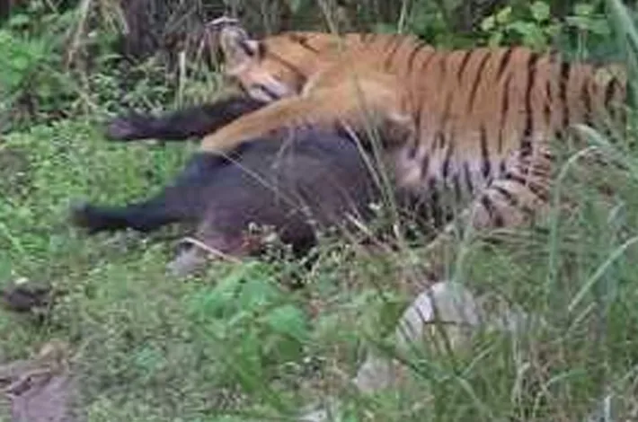బెల్లంపల్లి (విజయక్రాంతి): బెల్లంపల్లి మండలంలోని కన్నాల-బుగ్గ రాజరాజేశ్వర స్వామి ఆలయ పరిసర అటవీ ప్రాంతం(Forest area) వైపు గ్రామస్థులు ఎవరు వెళ్లవద్దని, బుగ్గ రోడ్డు మీదుగా రాకపోకలు సాగించవద్దని అటవీ సిబ్బంది కోరారు. బుగ్గ శివాలయానికి వెళ్లి కన్నాల గ్రామ(Kannala village) మూల మలుపు వద్ద శనివారం అడవి పందిపై పెద్దపులి దాడి చేసి చంపడంతో అటవీ సిబ్బంది(Forest staff) ఉలిక్కిపడ్డారు. వెళ్లిపోయిందని భావించిన పులి ఇదే ప్రాంతంలో సంచరించడంతో వారు పులి కోసం తీవ్రంగా గాలిస్తున్నారు. ఈ నేపథ్యంలో ఎవరు కూడా కన్నాల అటవీ ప్రాంతం(Kannala forest area) వైపు వెళ్లవద్దని సూచిస్తున్నారు. కన్నాల గ్రామం నుండి బుగ్గ దేవాలయానికి వెళ్లే రోడ్డును మూసివేశారు. కన్నాల, లక్ష్మీపూర్ గ్రామాల్లో శనివారం అటవీ సిబ్బంది తిరుగుతూ ప్రజలను అప్రమత్తంగా ఉండాలని కోరారు. పులి కన్నాల, బుగ్గ అటవీ ప్రాంతంలో మకాం వేసి సంచరిస్తున్నందున రైతులు అటువైపు ఉన్న పొలాల వైపు వెళ్ళవద్దని కోరారు. ఈ ప్రాంతంలో రాత్రి వాహనాలపై రాకపోకలు సాగించవద్దని గ్రామస్తులకు సూచించారు.