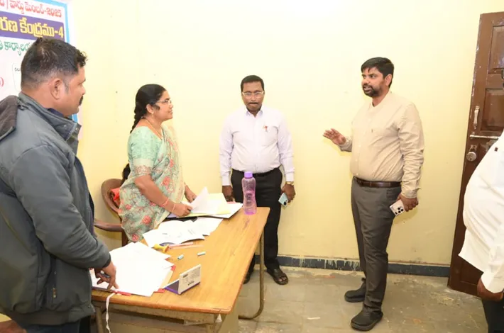 భీమారం, (విజయక్రాంతి): మంచిర్యాల జిల్లాలో సాధారణ పంచాయతీ ఎన్నికల నిర్వహణలో భాగంగా 3వ విడత నామినేషన్ ప్రక్రియ సమర్థవంతంగా నిర్వహించాలని జిల్లా ఎన్నికల అధికారి, కలెక్టర్ కుమార్ దీపక్ అన్నారు. గురువారం భీమారం మండలంలోనీ భీమారం, పోలంపల్లి, ఆరేపల్లి గ్రామాలకు భీమారం గ్రామపంచాయతీ, బూర్గుపల్లి, నర్సింగాపూర్ (బి) గ్రామాలకు బూర్గుపల్లి గ్రామపంచాయతీ, దాంపూర్, ధర్మారం, కాజిపల్లి గ్రామాలకు కాజిపల్లి గ్రామపంచాయతీలలో ఏర్పాటు చేసిన నామినేషన్ల స్వీకరణ కేంద్రాలను ఎంపీడీవో మధుసూదన్, జైపూర్ సిఐ నవీన్ లతో కలిసి సందర్శించి నామినేషన్ ప్రక్రియను పరిశీలించారు. ఈ సందర్భంగా ఆయన మాట్లాడుతూ నామినేషన్ ప్రక్రియలో అభ్యర్థులు సమర్పించిన పత్రాలను ఎన్నికల సంఘం నిబంధనలకు లోబడి క్షుణ్ణంగా పరిశీలించాలని, నిర్ణీత గడువు దాటిన తర్వాత వచ్చే నామినేషన్లను తీసుకోకూడదని, రిజిస్టర్లను సక్రమంగా నిర్వహించాలని కోరారు.