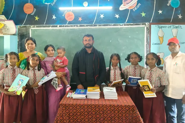 పెద్దమందడి: పెద్దమందడి మండల కేంద్రంలోని ప్రైమరీ పాఠశాలలో విద్యార్థులకు మంగళవారం రోజు బొందల కొండయ్య మనుమడు బి. ద్రువిత్ ఆర్యన్ జన్మదిన సందర్భంగా మండలం వ్యవసాయ అధికారి శ్రీనివాసులు కుటుంబ సమేతంగా విచ్చేసి పెద్దమందడి ప్రైమరీ పాఠశాల విద్యార్థులకు రూ 4000 విలువ గల నోటు పుస్తకాలు పెన్నులు అందజేసారు. ఈ కార్యక్రమంలో శ్రీనివాస్ యాదవ్, కుటుంబసభ్యులు, విద్యార్థులు, ఉపాధ్యాయులు తదితరులు పాల్గొన్నారు. వారి కుటుంబ సభ్యులకు మా పాఠశాల విద్యార్థులు, ఉపాధ్యాయుల పక్షాన ప్రత్యేక ధన్యవాదాలు తెలుపుకుంటున్నాను.