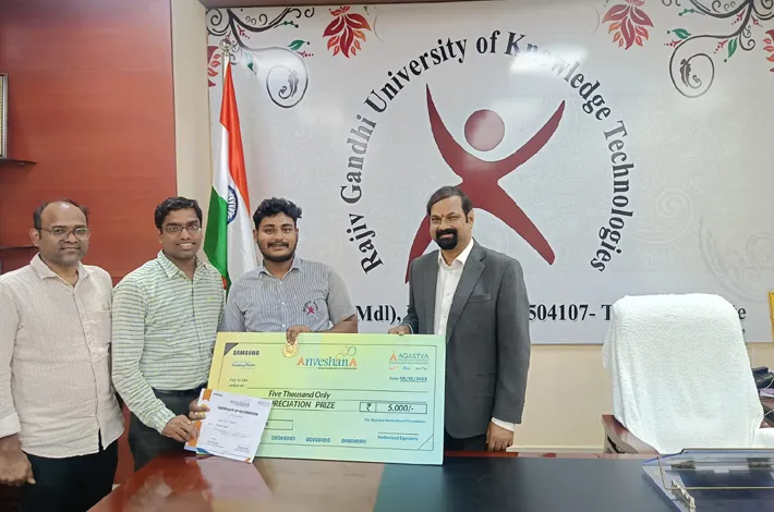 బాసర (విజయక్రాంతి): ప్రతి మనిషిలో ఏదో ఒక గొప్ప శక్తి దాగి ఉంటుందని అది పట్టుదలతో నైపుణ్యంతో బయటకు తీస్తే సాధించలేనిది ఏమీ లేదని బాసర ఆర్జీయూకేటీ విసిఏ గోవర్ధన్ అన్నారు. సోమవారం రోజు ఖైరతాబాద్ లోని విశ్వేశ్వరయ్య భవనంలో జరిగిన అగస్త్య ఇంటర్నేషనల్ ఫౌండేషన్ నిర్వహించిన ప్రతిష్టాత్మక అన్వేషణ పోటీలో బాసర ఆర్జీయూకేటీ" సోలార్ ఈడు వీల్స్ అనే ప్రాజెక్టు బృందం రెండవ ప్రశంస పురస్కారం అందుకున్నట్లు విసి గోవర్ధన్ తెలిపారు.