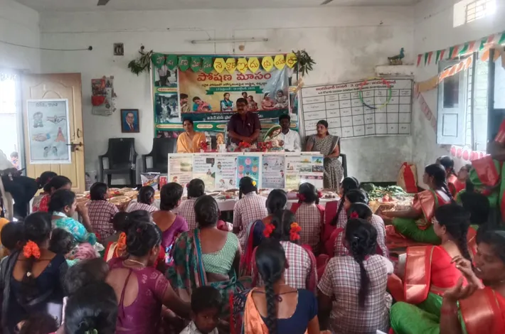 పోషణ్ అభియాన్ బ్లాక్ కో ఆర్డినేటర్ శ్యాంసన్, సూపర్వైజర్ గిరిజ పోషకాహారం ప్రాముఖ్యతను చిరుధాన్యాల వినియోగ ప్రయోజనాలను వివరించారు. మెడికల్ ఆఫీసర్ ఆశ్లేష గర్భిణీ, బాలింతలకు వ్యక్తిగత పరిశుభ్రత,ఆరోగ్య సలహాలు అందించారు.కమ్యూనిటీ బేస్డ్ ఈవెంట్స్లో భాగంగా పిల్లలకి అన్నప్రాసన కార్యక్రమం నిర్వహించారు.చివరగా సరైన పోషణ–ఆరోగ్య తెలంగాణ పోషణ లోపం ఏ ఊరిలో కనిపించకూడదు అనే ప్రతిజ్ఞ చేశారు. కార్యక్రమంలో అంగన్వాడీ టీచర్లు, ఆశా వర్కర్లు, లబ్ధిదారులు, గర్భిణీలు, బాలింతలు పాల్గొన్నారు.