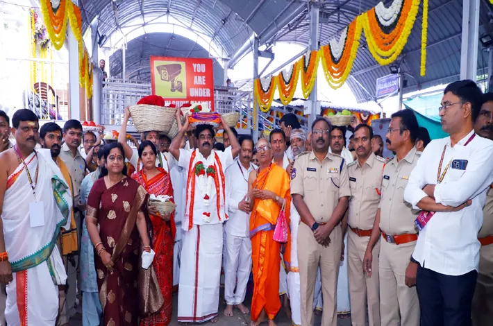 అనంతరం గర్భగుడిలో ప్రత్యేక పూజలు నిర్వహించి స్వామివారికి పట్టు వస్త్రాలు సమర్పించారు. పూజల అనంతరం ఆలయ అర్చకులు ఆశీర్వచనం చేసి తీర్థ ప్రసాదాలు అందించా రు.అనంతరం మీడియా సెంటర్ వద్ద డిప్యూటీ ఈఓ లోకనాథం మాట్లాడుతూ, టీటీడీ తరఫున వేములవాడ దేవస్థానానికి గత 28ఏళ్లుగా పట్టు వస్త్రాలు సమర్పిస్తున్నామని తెలిపారు. ఈ కార్యక్రమంలో ఆలయ ఈఓ రమాదేవి, అర్చకులు,దేవస్థాన సిబ్బంది పాల్గొన్నారు.