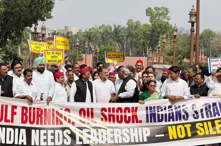 ప్రతిపక్ష ఎంపీలు పశ్చిమాసియా వివాదంపై చర్చకు డిమాండ్ చేస్తూ పార్లమెంటు మకర్ ద్వార్ సమీపంలో నిరసన చేపట్టారు. దానికి సంబంధించిన కీలక అంశాలపై ప్రభుత్వం "మౌనం" వహించడాన్ని విమర్శించారు. "గల్ఫ్ కాలిపోతోంది, చమురు షాక్. భారతీయులు చిక్కుకుపోయారు. భారతదేశానికి నాయకత్వం అవసరం - నిశ్శబ్దం కాదు" అని రాసి ఉన్న భారీ బ్యానర్తో ఎంపీలు ప్రభుత్వానికి, ప్రధాన మంత్రి నరేంద్ర మోడీకి వ్యతిరేకంగా నినాదాలు చేశారు. ఈ నిరసనలో ఖర్గే, గాంధీ, అఖిలేష్ యాదవ్, టీఎంసీకి చెందిన సాగరిక ఘోష్ తదితరులు పాల్గొన్నారు.