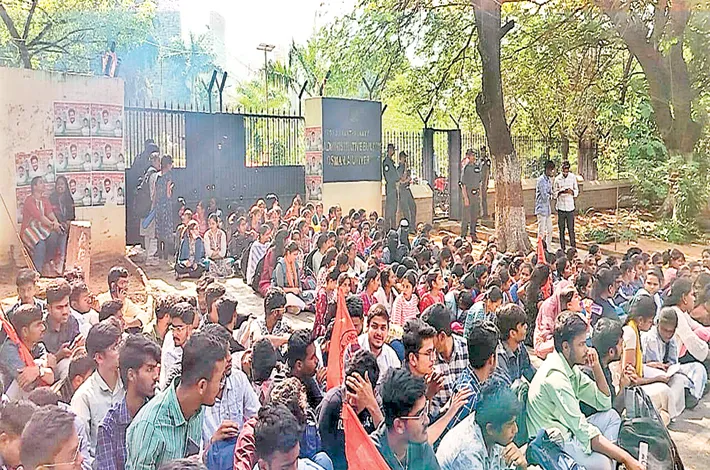 వెంటనే పరీక్ష ఫలితాలను విడుదల చేయాలన్నారు. టీచిం గ్, నాన్టీచింగ్ సిబ్బంది కొరతతో ఉన్నవారికే బాధ్యతలు అప్పగించడంతో ఒత్తిడికి గురికావడం వల్ల తప్పిదాలు జరిగే అవకాశం ఉందన్నారు. విద్యార్థులకు సరిపడా తరగతులు, ల్యాబ్, మెస్ వసతి కల్పించాలని డిమాండ్ చేశారు. విద్యార్థినుల హాస్టల్కు కిలోమీటర్ దూరంలో మెస్ ఉండటంతో చీకట్లో వారు ఇబ్బందులు పడుతున్నారన్నారు. కార్యక్రమంలో ఏబీవీపీ విద్యానగర్ విభాగ్ కన్వీనర్ హరిప్రసాద్, రాష్ట్ర వర్కింగ్ కమిటీ మెంబర్ రాజు, నాయకులు.. శివశంకర్, శేఖర్, మహేశ్, రాహుల్, నవీన్, మనీశ్, స్వాతి, పల్లవి, రేష్మ, సంజన పాల్గొన్నారు.