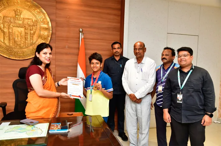 విద్యార్థినిని జిల్లా కలెక్టర్ పమేలా సత్పతి తన కార్యాలయంలో కార్యాలయంలో ప్రత్యేకంగా అభినందించారు. ఈ సంధర్భంగా పాఠశాల చైర్మన్ డాక్టర్ ఇ. ప్రసాదరావు, డైరెక్టర్స్ ప్రసూన, అనూకర్ రావు, రశ్మిత, వి.యు. యం. ప్రసాద్, వినోద్ రావు, హన్మంతరావు, ప్రధానోపాధ్యాయుడు గోపికృష్ణ, సమన్వయ కర్త రబీంద్ర పాత్రో, వ్యాయామ ఉపాధ్యాయులు యస్.రాజు, రాజబాపు, శ్రీనాథ్, గోలి సుధాకర్ లుఅభినందించారు.