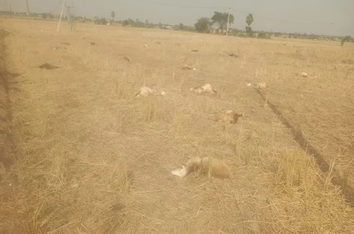 వేములపల్లి నవంబర్ 6 (విజయ క్రాంతి): విషపు అహారం తిని 150కు పైగా గొర్రెలు మృతి చెందిన సంఘటన నల్గొండ జిల్లా వేములపల్లిమండల కేంద్రం సమీపంలో గురువారం చోటుచేసుకుంది. వివరాల్లోకి వెళితే సూర్యాపేట జిల్లా, పెన్పహాడ్ మండలం, అన్నారం, అనంతరం, ముకుందాపురం,దోసపాడు గ్రామాలకు చెందిన ఉప్పునూతల సైదులు, శ్రీరాముల కోటయ్య, శ్రీరాముల గోపాలు ,ఆవుల కోటయ్య, ఆవుల వెంకన్న లు తమ గొర్రెలను గత కొన్ని రోజులుగా మండల కేంద్రం సమీపంలో మేపుతున్నారు.
