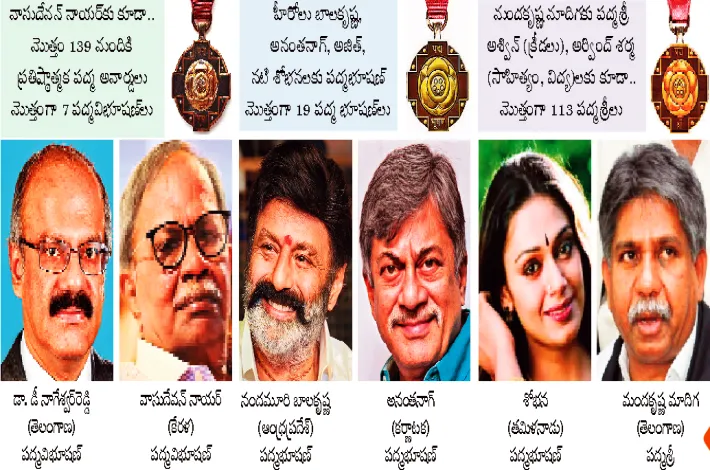 అలాగే ఆంధ్రప్రదేశ్కు చెందిన ప్రముఖ తెలుగు హీరో నందమూరి బాలకృష్ణకు కళల విభాగంలో పద్మభూషణ్ పురస్కారం లభించింది. తెలంగాణకు చెందిన మందకృష్ణకు పద్మ పురస్కారం లభించింది. ఇక క్రీడల రంగంలో ఐదుగురికి పద్మ అవార్డులు లభించాయి. హాకీ మాజీ ఆటగాడు శ్రీజేష్ (కేరళ)కు పద్మభూషణ్ అవార్డు రాగా..