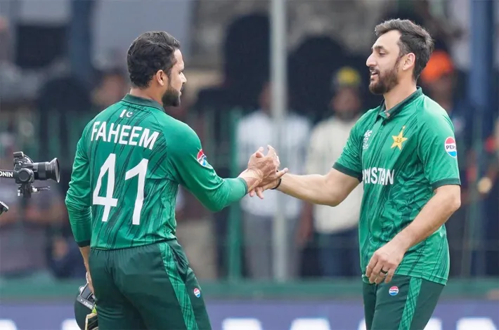 తర్వాత నెదర్లాండ్స్ బౌలర్లు వరుస వికెట్లు తీసి పాక్ను ఒత్తిడిలోకి నెట్టారు.114 పరుగులకే 7 వికెట్లు కోల్పోవడంతో నెదర్లాండ్స్ సంచలనం సృష్టించేలా కనిపించింది. ఈ దశలో ఫాహీమ్ అష్రాఫ్(11 బంతుల్లో 29) మెరుపులు మెరిపించి పాక్ను గెలిపించాడు. 19 వ ఓవర్లో 4 సిక్సర్లు బాది పాక్ను ఓటమి నుంచి గట్టెక్కించాడు. ఫలితంగా పాక్ మరో 3 బంతులు మిగిలుండగా గెలిచింది.