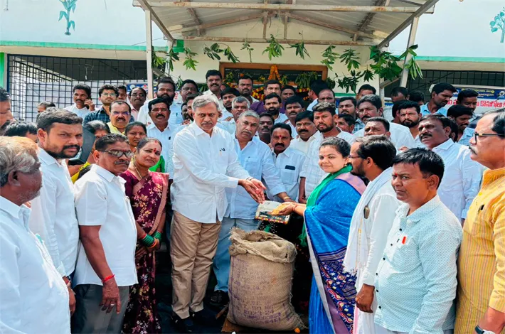 తరిగొప్పుల, అక్టోబర్ 16 (విజయక్రాంతి) : జనగామ జిల్లా శాసనసభ్యులు పల్లా రాజేశ్వర్ రెడ్డి తరిగొప్పుల మండలంలోని అబ్దుల్ నాగారం గ్రామంలో వడ్ల కొనుగోలు కేంద్రాన్ని ప్రారంభించాడు. ఈ కార్యక్రమంలో పల్ల రాజేశ్వర్ రెడ్డి మాట్లాడుతూ... మండలంలోని రైతులందరూ ఐకెపి సెంటర్ లోనే తమ వడ్లను , అమ్ముకోవాలని, దళారులను నమ్మి మోసపోవద్దని ,ప్రభుత్వం అందించే మద్దతు ధరను పొందాలని రైతుల ఉద్దేశించి రైతు సంక్షేమానికి ప్రభుత్వం పెద్దపీట వేయాలని , రైతు బాగుంటేనే రాజ్యం బాగుంటదని.