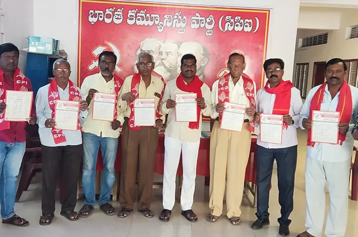 బెల్లంపల్లి అర్బన్: భాషెట్టి గంగారం విజ్ఞాన్ భవన్ లో సీపీఐ పట్టణ సమితి ఆధ్వర్యంలో గురువారం కరపత్రాన్ని ఆవిష్కరించారు. ఈ సందర్భంగా జిల్లా సీపీఐ కార్యదర్శి రామడుగు లక్ష్మణ్ మాట్లాడుతూ సీపీఐ పార్టీ 100 సంవత్సరాలు పూర్తి చేసుకున్న సందర్భంగా శతజయంతి ఉత్సవాల ముగింపు భారీ బహిరంగ సభ డిసెంబర్ 26న ఖమ్మంలో నిర్వహించడం జరుగుతోందన్నారు. ఈ సభకు అన్ని రాష్ట్రాలతో పాటు 40 దేశాలకు చెందిన ప్రతినిధులు పాల్గొంటారని తెలిపారు. ముగింపు సభకు రాష్ట్రంలో మూడు జాతాలను వస్తున్నాయన్నారు. అందులో బాగానే ఈనెల 15వ తారీకు నుండి కొమురం భీం ఆసిఫాబాద్ జిల్లా జోడేఘాట్ నుండి బస్సు జాత ప్రారంభమవుతుందరన్నారు.
