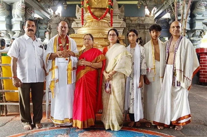భద్రాద్రి కొత్తగూడెం: భద్రాచలంలోని శ్రీ సీతారామచంద్ర స్వామిని పరకాల ఎమ్మెల్యే రేవూరి ప్రకాష్ రెడ్డి కుటుంబ సమేతంగా శనివారం దర్శించుకున్నారు. ఆలయ అధికారులు, అర్చకులు ఎమ్మెల్యేకి ఆలయ మర్యాదలతో స్వాగతం పలికారు. ఎమ్మెల్యే రేవూరి ప్రకాష్ రెడ్డి కుటుంబ కలిసి స్వామివారికి ప్రత్యేక పూజలు నిర్వహించి మొక్కులు చెల్లించుకున్నారు. దర్శనం అనంతరం అర్చకులు తీర్థప్రసాదాలు అందజేసి ఆశీర్వదించారు.