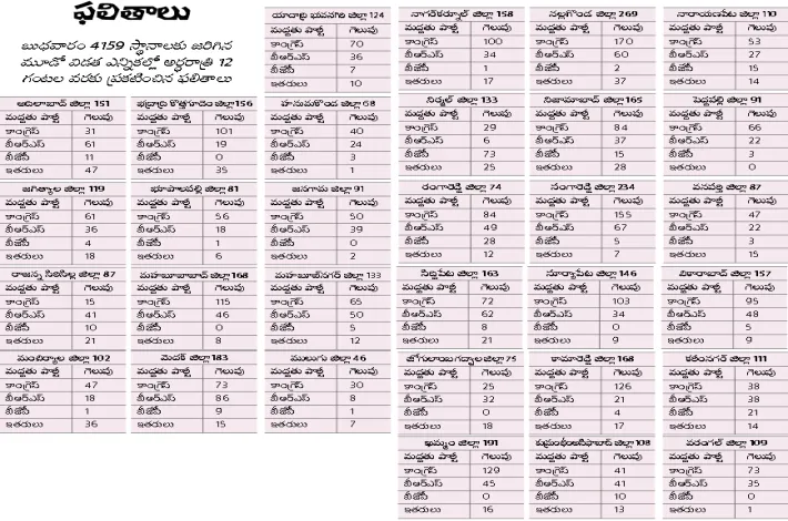 రెండు, మూడో స్థానంలో మెదక్, సూర్యాపేట జిల్లాలు ఉండగా, చివరి స్థానంలో నిజామాబాద్ జిల్లా ఉన్నది. నిజామాబాద్లో 76.45 శాతంతో చివరి స్థానంలోకి వెళ్లింది. కాగా పంచాయతీ ఎన్నికల్లో కాంగ్రెస్కు భారీ ఎదురుదెబ్బ తగలబోతుందని ప్రతిపక్షాలు చేసిన అంచనాలు తలకిందులయ్యా యి. పల్లెల్లో పట్టు కోసం నువ్వా.. నేనా అన్నట్లుగా సాగిన ఎన్నికల్లో కాంగ్రెస్ పార్టీ మెజార్టీ సీట్లు గెలిచినా ప్రధాన ప్రతిపక్ష బీఆర్ఎస్ గట్టి పోటీ ఇచ్చిం ది.