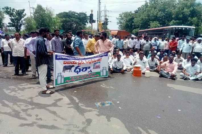 అయితే రెండున్నర నెలలుగా బిల్లులు ఇవ్వడం లేదని ఆగ్రహం వ్యక్తం చేశారు. ఇప్పటి వరకు జిల్లాలోని రైతులకు ప్రభుత్వం (విజయ డెయిరీ) రూ.9.6కోట్లు బకాయి ఉందన్నారు. దీనికి అదనంగా ప్రతి లీటర్ పాలకు రూ.4 ప్రోహత్సకం ఇస్తామని ఇటీవల ప్రభుత్వం ప్రకటించిందని తెలిపారు. దీనికి భిన్నంగా అసలు బిల్లు లేదు, ప్రోత్సాహకం లేకపోవడంతో పశువుల పోషణ ఇబ్బందిగా మారిందని వాపోయారు. ప్రభుత్వం వెంటనే బిల్లులు విడుదల చేయాలని డిమాండ్ చేశారు. ఈ కార్యక్రమంలో రైతులు రామాచంద్రం, బుచ్చి రెడ్డి, లక్ష్మారెడ్డి, ప్రశాంత్ శర్మ, శ్రీనివాస్ రెడ్డి తదితరులు పాల్గొన్నారు.